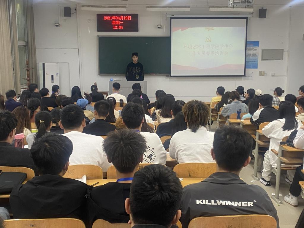 为进一步加强环艺学院学生会工作人员队伍建设,提升学生会工作人员的服务意识与工作实效,推动学生学生会工作人员管理工作进一步科学化、规范化,支持和引导学生会工作人员更好地服务青年学生成长成才。环艺学院于4月19日12时在1102教室举行2021年春季学生会工作人员培训会议启动仪式。会议有学生会执行主席王润涵主持,环艺学院团总支书记朱函兵参加了会议。
