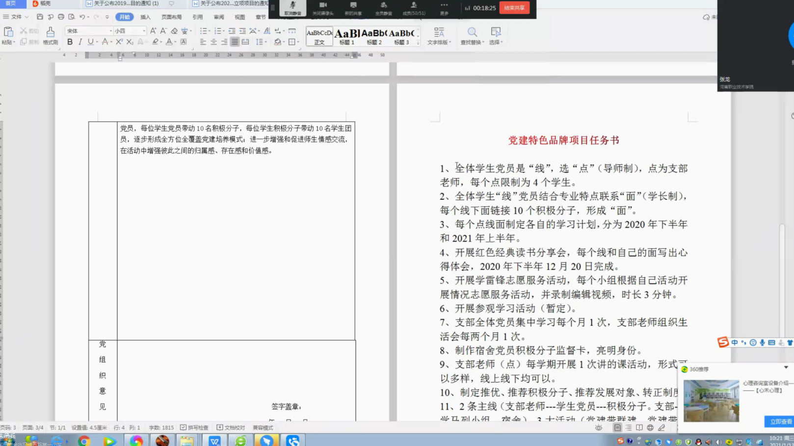 1、2020年6月,完成基层党建特色品牌活动创建:《画好党建“点线面”引领学生长成长成才》创建申报工作。(申报书)