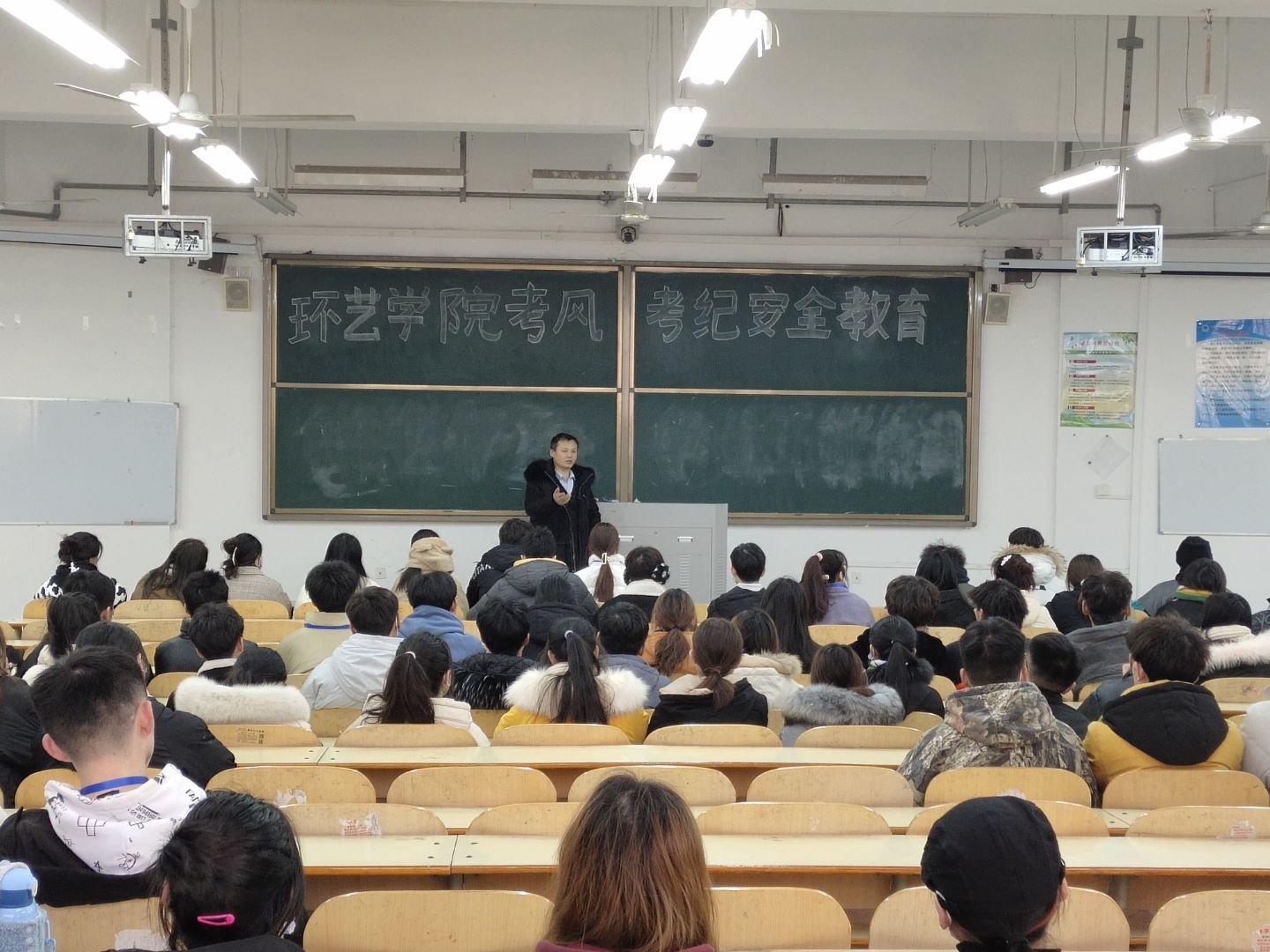 2020年12月31日--2021年1月8日环境艺术工程学院学生考风考纪与安全教育动员部署系列活动顺利举行。活动旨在进一步严肃学院考风考纪,加强学风建设,营造文明考试的环境,让同学们以良好的心态,最佳的状态去迎接考试,构建和谐安全的校园环境,加强我院学生自我防范意识,减少安全事故的发生,构建和谐安全的校园环境,促使学生的健康成长;希望全体学生干部:做有担当、有社会责任感的学生干部,杜绝侥幸和投机心理,营造全院同学遵守考场纪律,相互监督,诚信应考,杜绝作弊的优良考风;希望同学们时刻保持警惕,提高自我防范意识,将安全问题牢记于心,实践于行,共同营造一个安全、文明、健康的学习环境。(供稿:胡勇审稿:朱函兵)