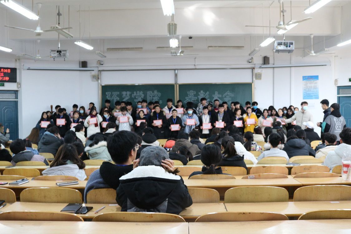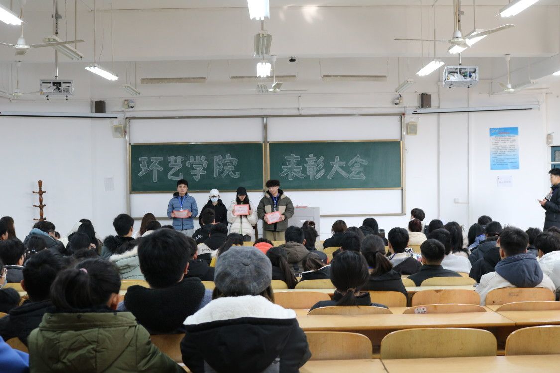 1月6日中午,环境艺术工程学院2020-2021学年第一学期总结暨表彰大会在1204教室举行,学生会全体工作人员、志愿者服务大队、创新创业促进会、学生代表等200名学生参加了此次会议,会议由执行主席王润涵主持,宣读了《关于表彰2020-2021学年第一学期“优秀学生会干部”的决定》,并对获奖学生颁奖,并致以祝贺。