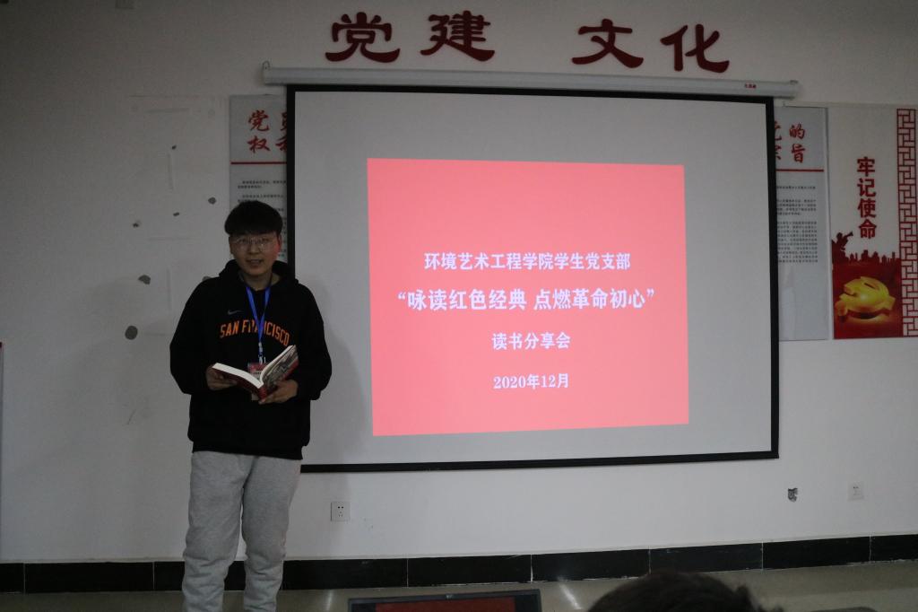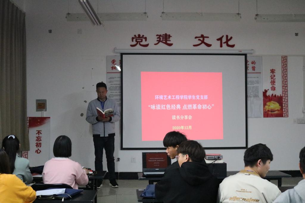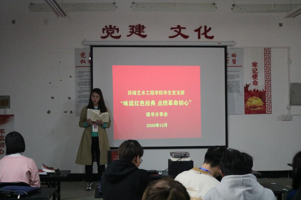 为深入学习贯彻党的十九大精神和习近平新时代中国特色社会主义思想,推进环艺学院学生党支部学习教育常态化制度化和基层党建特色品牌建设,调动党员同志了解党史、接受党性教育的积极性,12月24日下午,环艺学院学生党支部36名学生党员在党建活动室开展了以“红色经典”为主题的读书分享会。