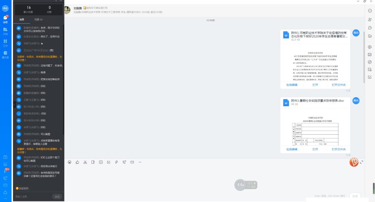 根据河南职业技术学院团委关于《在疫情防控常态化形势下做好2020年学生志愿者暑期文化科技卫生“三下乡”社会实践工作》的通知要求,环境艺术工程学院积极进行了动员部署,并于2020年8月3日晚通过钉钉平台举行了启动仪式,团总支书记朱函兵主持会议。
