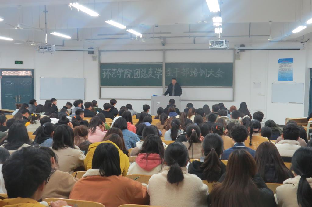 12月4日中午,环艺学院在1101教室召开学生干部培训会,环艺学院各行政班班长、团支书以及学生会全体成员参加本次培训会,会议由学院团总支书记朱函兵主持,