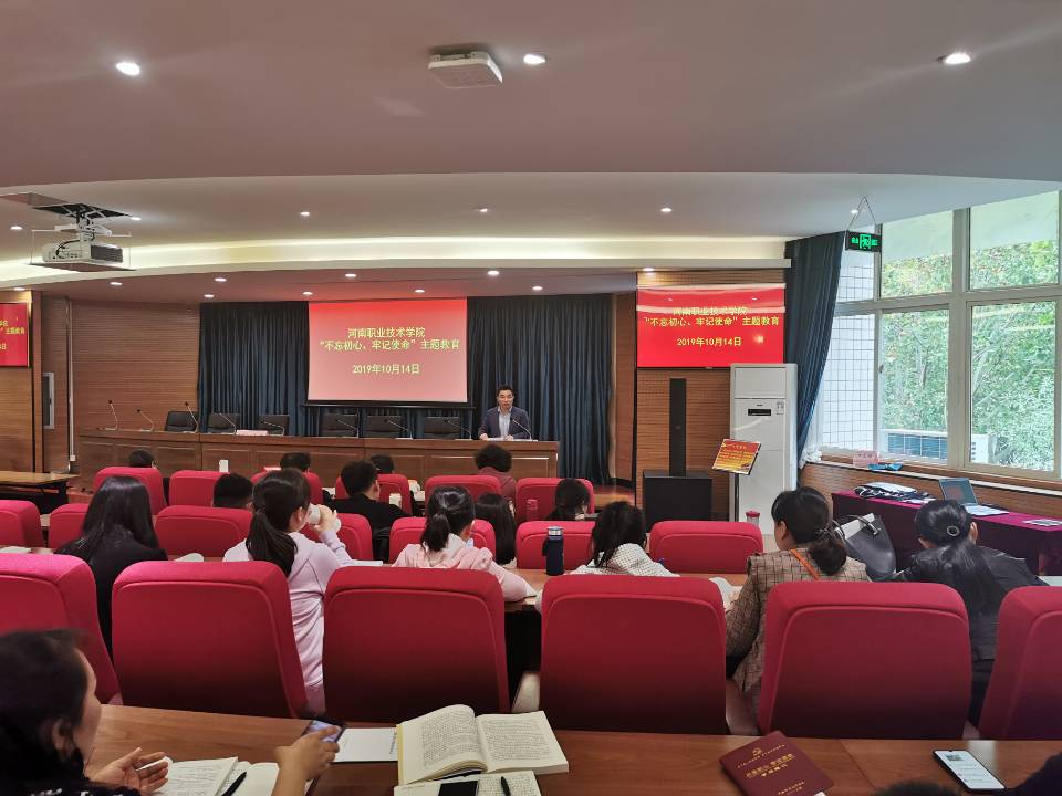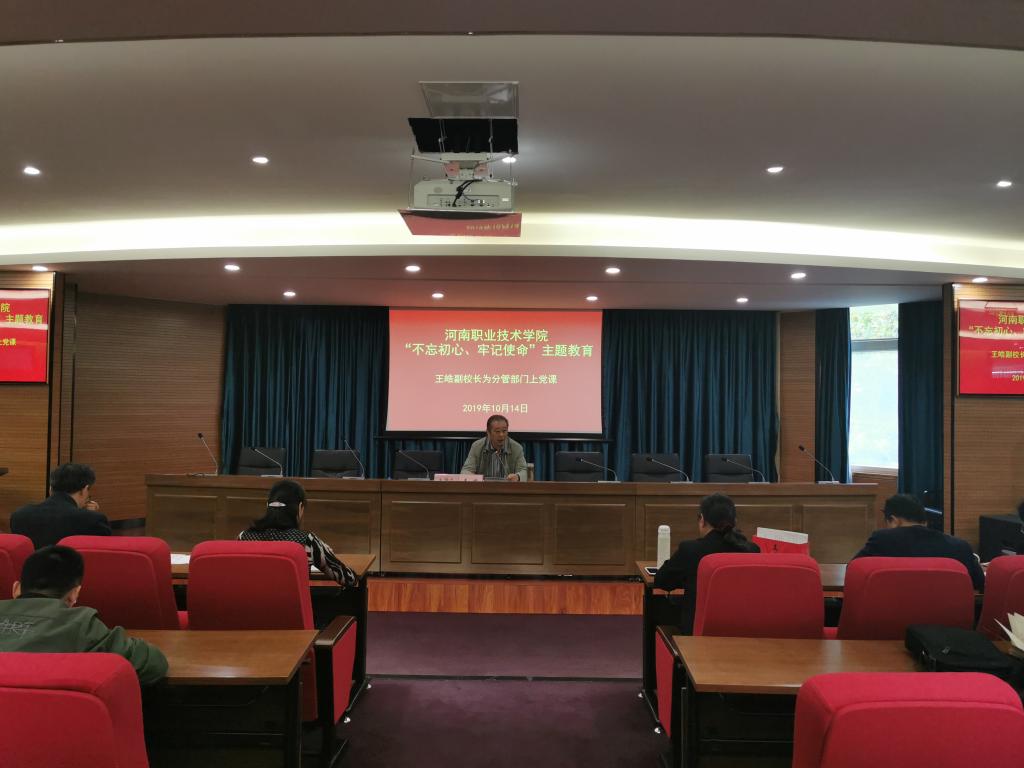 为深入开展“不忘初心,牢记使命”主题教育活动,10月14日下午,在行政楼238会议室,学校王皓副校长和学院王永书记先后为环境艺术工程学院全体党员教师讲党课,为全院各基层党支部开展“千堂党课进支部”活动带好头、做表率。王皓副校长以“不忘初心,牢记使命”为主题,从习近平总书记对广大教师师德师风的要求开篇,讲述了新时代高校教师应具备素质和能力。接下来王永书记以“遵规守矩,为党旗添彩”为主题,结合环艺工作实际,为大家剖析了目前环艺学院存在的问题,号召党员同志“不忘初心,牢记使命”,做到心中有责、心中有戒,敢担当、善作为,要像焦裕禄等先进典型人物学习,甘于奉献,为学院的“双高校”建设和发展贡献应有的力量。