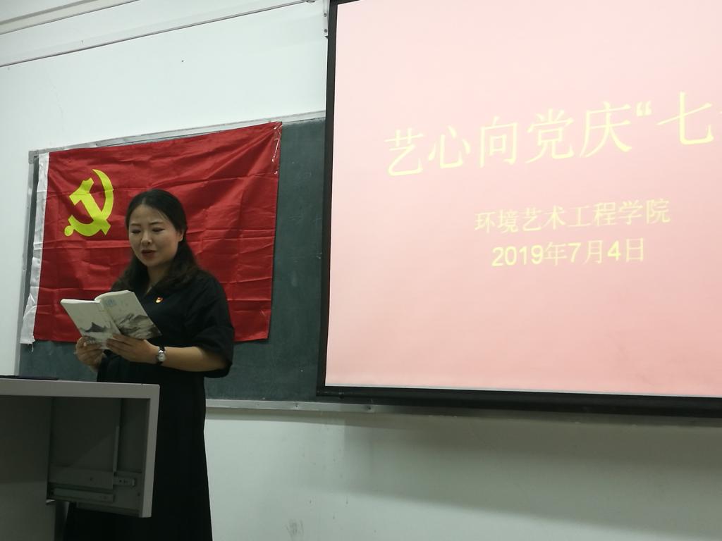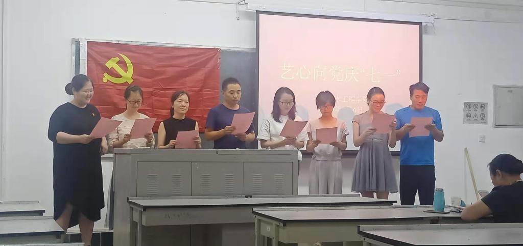 2019年7月4日下午在四号教学楼制图室一环艺学院召开了全体教师会议,主题为“艺心向党”庆祝党的生日。在此次活动上,陆立颖院长以“守住六心”为主题为全体教师讲党课,李倩副院长以“遵规守矩”为主题为全体教师讲党课。之后各支部分别进行了诗歌朗诵、党课比赛汇报讲演等庆祝活动,大家在石保艳老师的带领下合唱“我和我的祖国”将此次活动推向高潮,最后全体党员再一次站在党旗下庄严重温入党誓词。通过此次活动的开展,所有党员进一步提高了党性认识,明确了当前形势下教师的职责,为进一步做好本职工作奠定了基础。