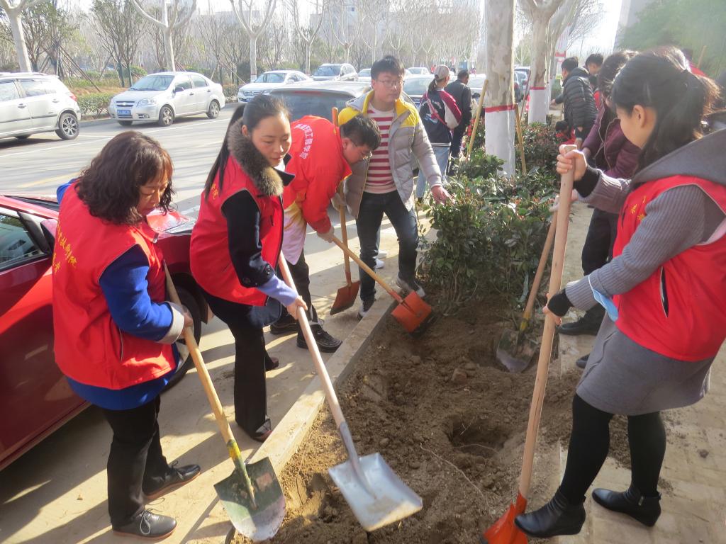 在植树节和我院雷锋月到来之际,3月8日上午,环艺学院党总支副书记王静、院学生支部党员和部分院学生会成员在学校主干道开展志愿义务植树活动,为校园美化贡献自己的一份力量。