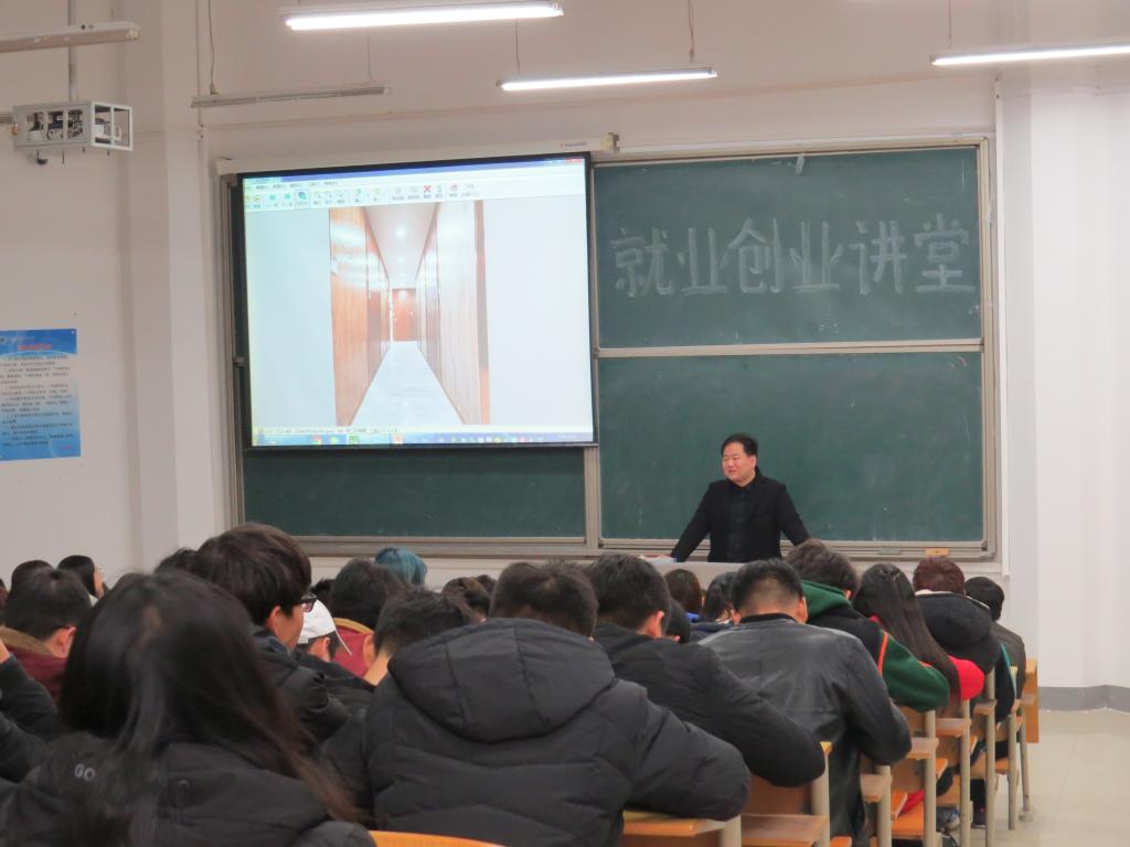 为帮助同学们增强创业意识,树立正确的创业观,12月6号下午,我院优秀毕业生、河南富甲一方装饰公司总经理王跃盛在电教楼202教室为环艺学院2017级室空、室设专业200余名学生开展创业讲座。