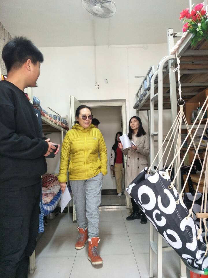 在宿舍走访中,副校长王皓、党政办主任任枫轩、继续教育学院院长胡锡凤、合作交流处副处长吉武俊、党政办副主任张燕祥、苏威、环艺学院院长陆立颖、环艺学院党总支书记王永、环艺学院副院长司志国等领导详细了解学生学习情况、生活情况,并对宿舍可能存在的安全隐患及卫生状况进行了检查;他们与同学们亲切交谈,勉励同学们刻苦学习,希望同学们能保持宿舍卫生,养成良好的生活习惯,营造良好的宿舍关系,一起度过美好的三年大学生活。本次宿舍走访氛围温馨快乐,拉近了师生距离,促进了师生感情。