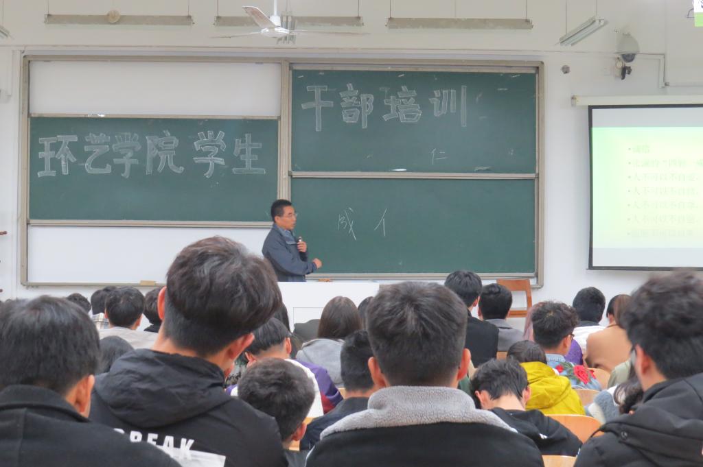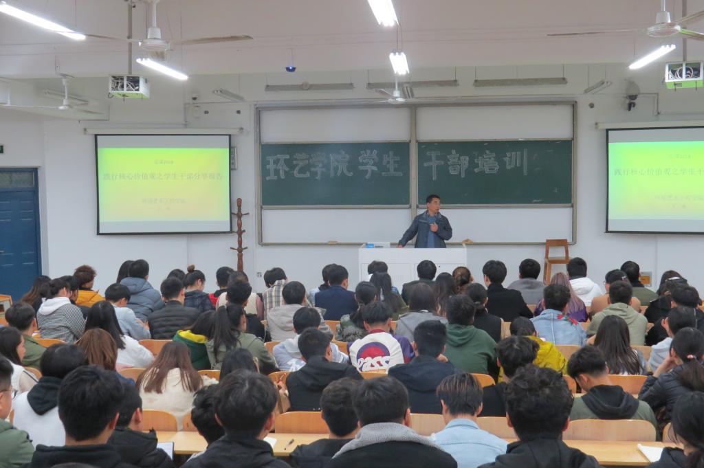 为加强新时代大学生思想作风建设,11月28日晚,环艺学院党支部书记王永在3110教室给2018级各班班委、全体学生会成员、环艺学院入党积极分子共150余人上党课。