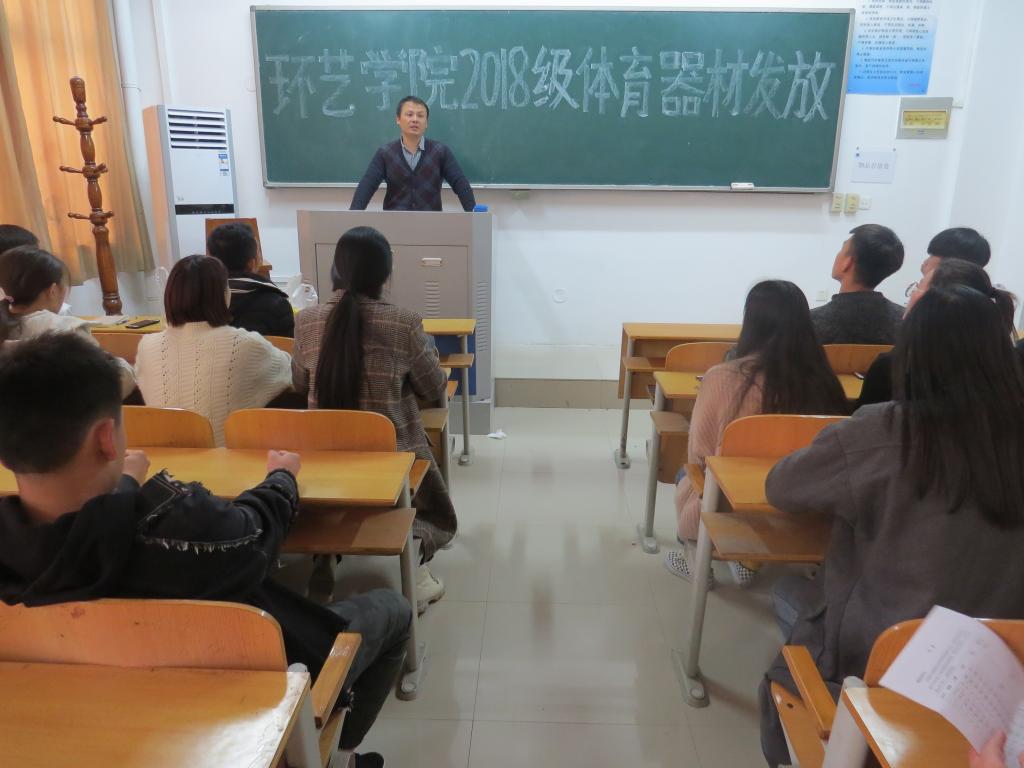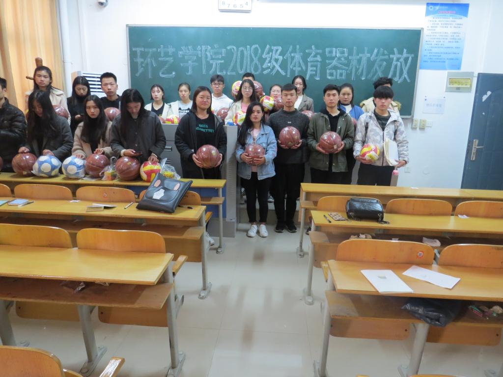 为丰富环艺学院2018级新生的课余文化生活,11月12日,环艺系在2201教室为2018级新生各行政班级统一发放体育用品。环艺学院团总支书记朱函兵为2018级22个班级配发篮球、足球、排球等体育用品,鼓励同学们,加强锻炼,增强身体素质。