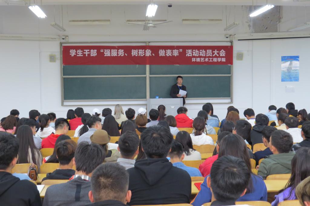 为了进一步增强学生干部的服务意识和自律意识、提高学生干部综合素质,打造一支品德高、学习好、能力强的学生干部队伍。10月25日,环艺学院在1301教室开展学生干部“强服务、树形象、做表率”主题教育活动,环艺学院200余名学生干部参加此次主题教育活动。