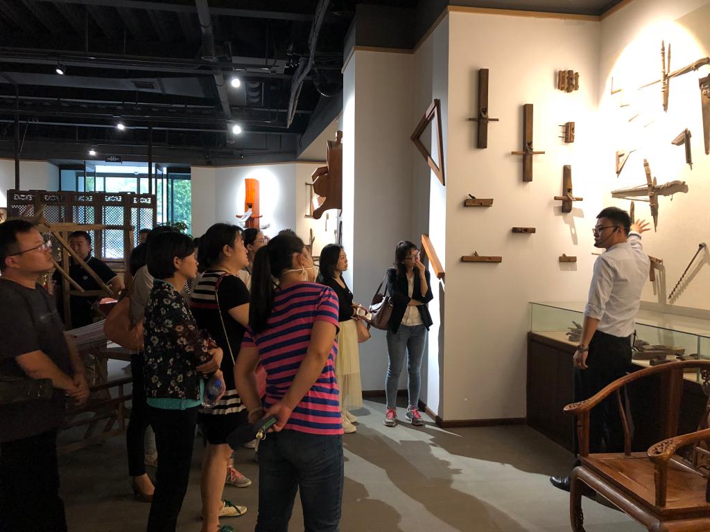 三尺讲台育桃李,一支粉笔写春秋。9月10号下午,在第34个教师节,环境艺术工程学院组织开展了美祥寻木馆匠心匠意活动,约有三十位老师参加了此次活动。寻木馆是以木作文化为主题的综合性木作博物馆。在寻木馆参观了管内展示的各种木作工具和独具特色的艺术品。寻木馆老师并对中国传统木作文化及区域文化进行了讲解。最后,在寻木馆郝师傅的指导下老师们还亲自体验了木勺的制作,零距离与木作工具、艺术品对话,感知木作文化的制作技艺,在一刀一刨中潜心体会“匠人精神”,完成了各人的木勺作品。