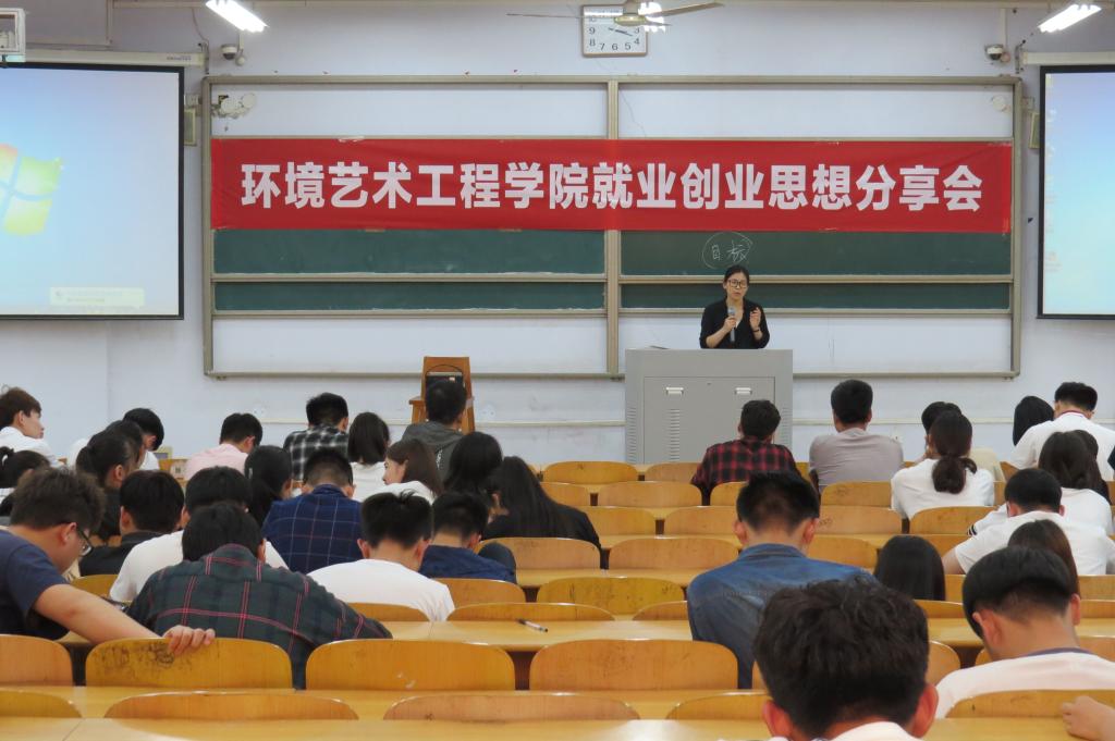 为了帮助2019届毕业生准确定位就业方向,在思想、行动上早做准备,5月22日下午,环艺学院在1104教室举行就业创业思想分享会,140余名环艺系大二学生参加本次分享会。