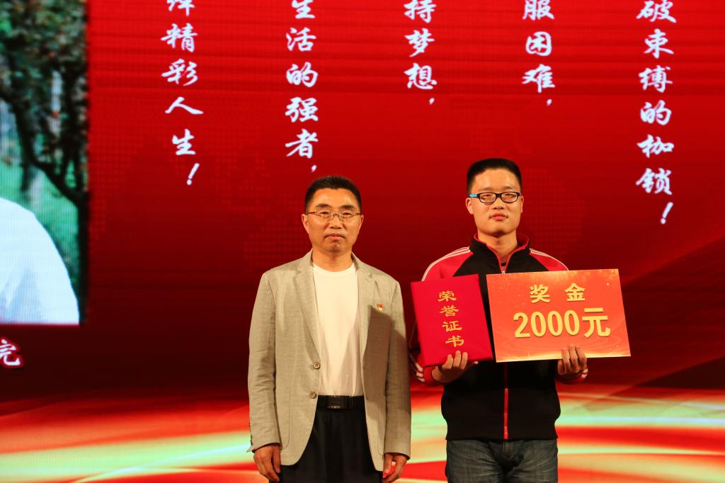 颁奖典礼上,我院工造174班李汇才同学被授予河南职业技术学院首届“自强之美--河职最美大学生”称号,院党总支书记王永同志亲自为该生颁发获奖证书及奖金;工造174班团支书廖文豪同学代表我院68名优秀团干接受了表彰;我院团总支被授予“优秀团总支称号”。