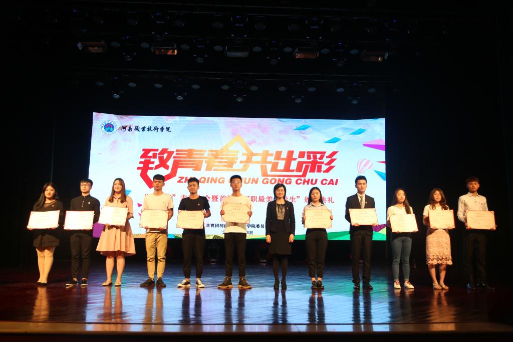 在第99个五四青年节来临之际,河南职业技术学院团委于5月3日在音乐厅举办了“致青春 共出彩”五四表彰暨首届“河职最美大学生”颁奖典礼。我院学生管理工作人员及优秀学生团员代表共61人参加了典礼。
