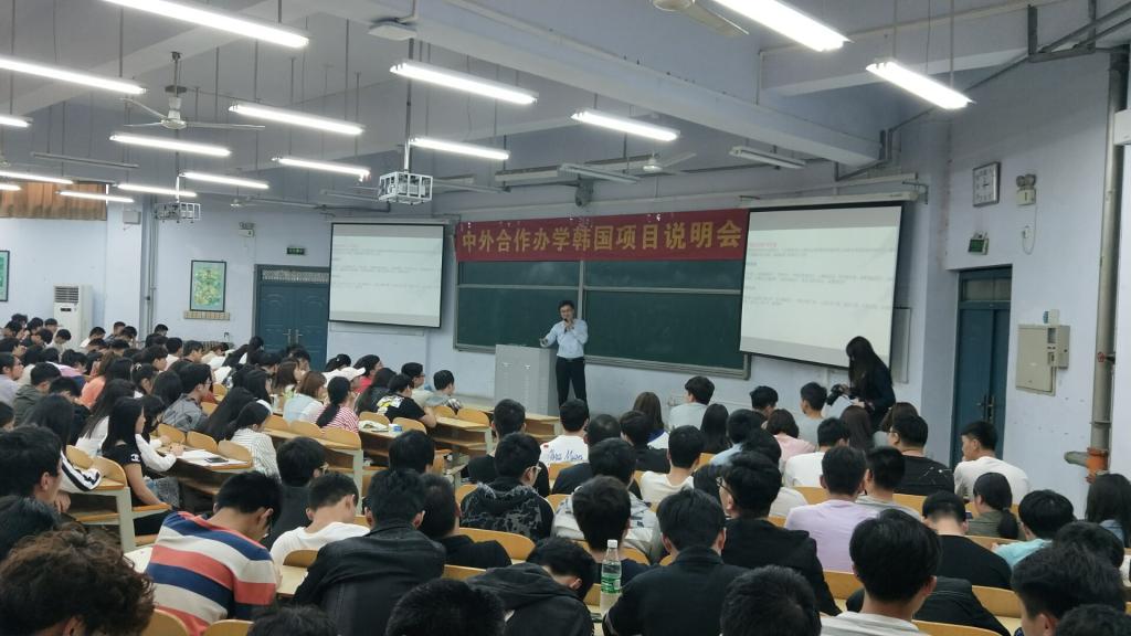 4月19日下午,李锐老师主讲“中外合作办学韩国项目说明会”在1106教室召开,环境艺术工程学院和机电工程学院共400余名学生参加说明会。