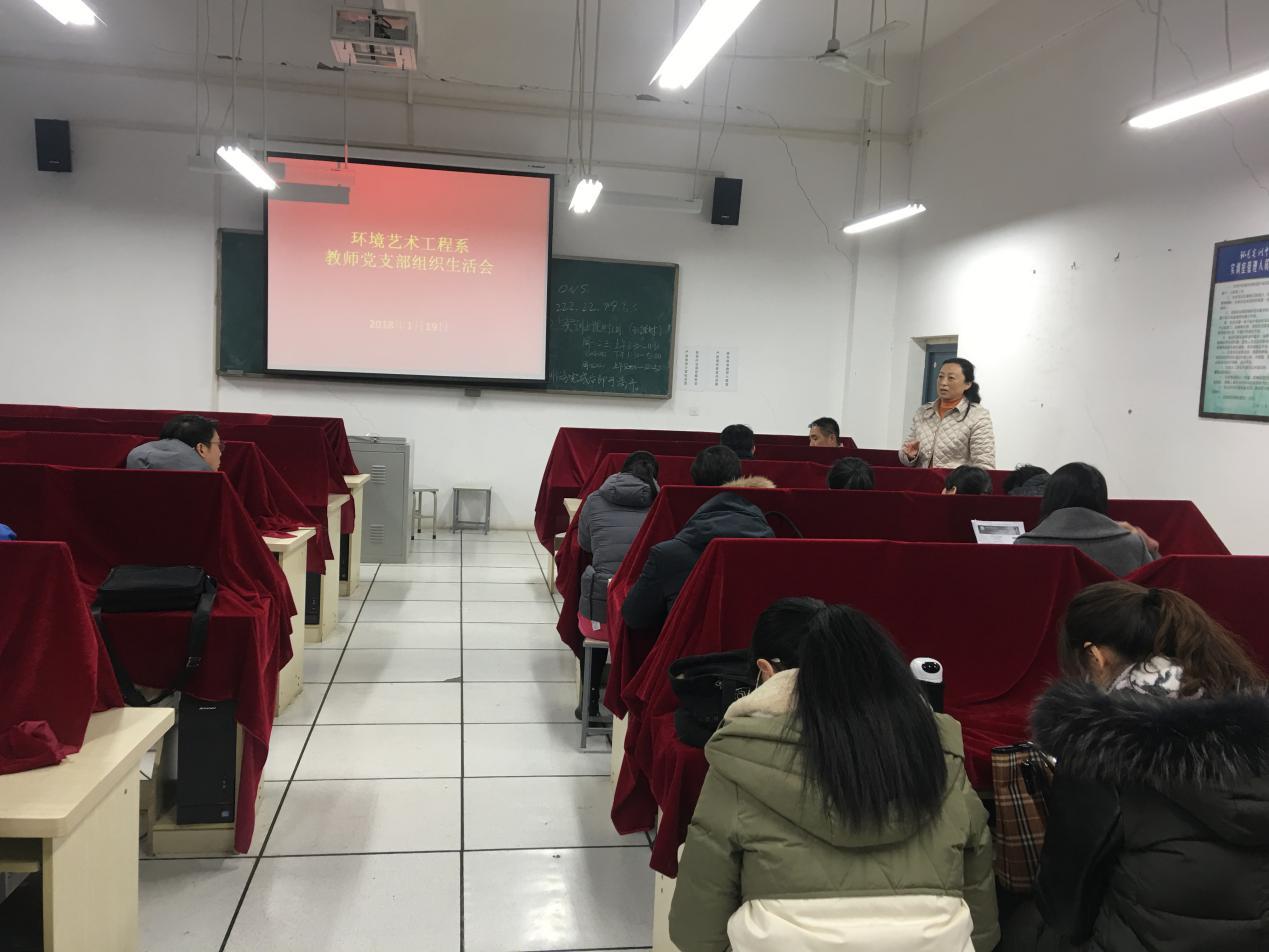 根据学院《关于开好2017年度党员领导干部民主生活会和基层党组织组织生活会的通知》,结合我系自身情况,2018年1月19日下午,环艺系教师党支部在电教楼109召开组织生活会,全体教师党员参加。