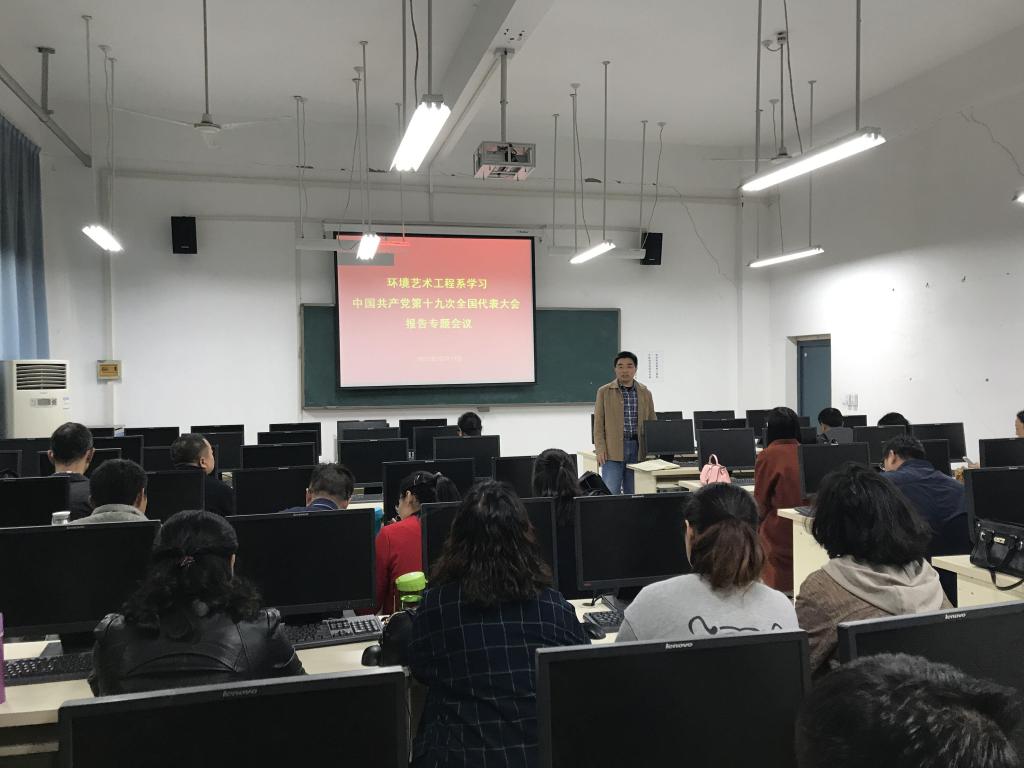 昨天下午,环境艺术工程系在电教楼109召开全体教工会议,集中学习中国共产党第十九次代表大会上习总书记的报告精神。系党总支王永书记就十九大报告的组织学习、结合实际进一步做好毕业生就业和全系安全稳定等工作提出具体要求。陆立颖主任也结合十九大精神给老师们提出了更高的要求和新的希望。根据学院教学管理工作的新要求和新做法,针对我系教学特点和实际情况,李倩副主任做出具体部署。(撰稿:李宁;审稿:王永)