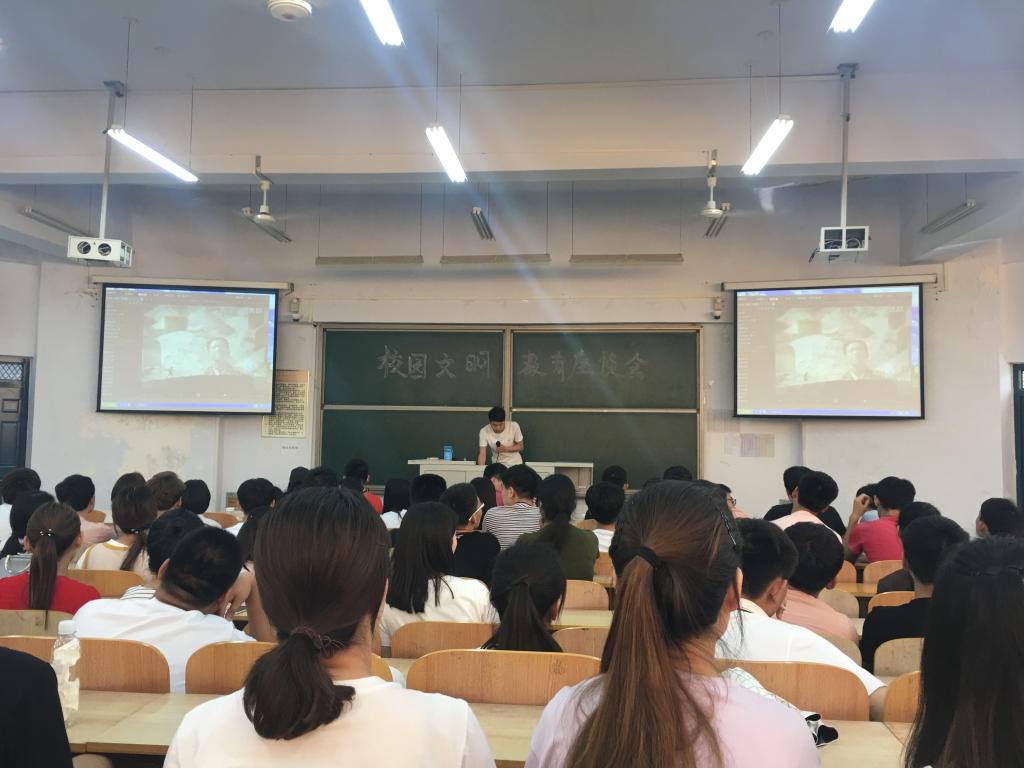 为加强校园文明建设,配合我院环境督查月活动,5月18日下午,我系在3号教学楼3305教室召开校园文明教育座谈会。2016级200余名学生代表参加。
