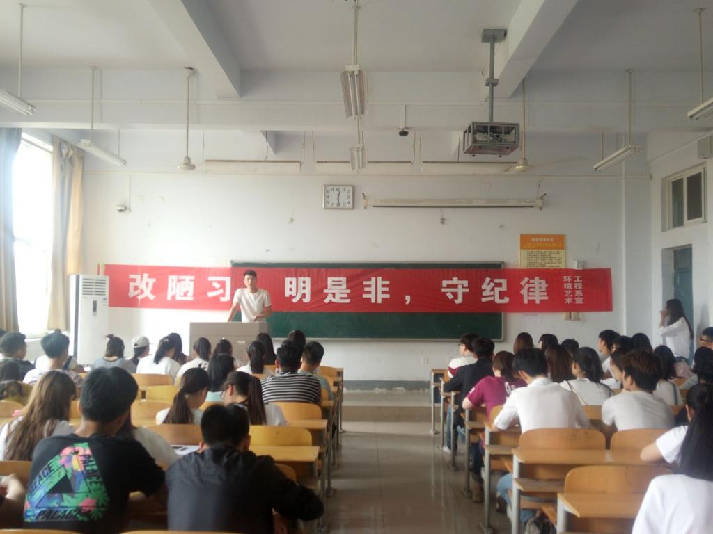 为为贯彻学院活动的通知精神,5月11日中午,环艺系在2号教学楼2208教室召开“校园环境文明督察月”活动动员大会,2015级所有班长及部分学生会同学参加。