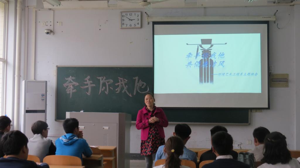 根据学工部安排,4月25日下午,环艺系在2301教室举行了“牵手你我他,共倡廉洁风”主题班会比赛活动。环艺系辅导员带领各自班级参加比赛。环艺系党总支书记王永观看比赛并担任评委。
