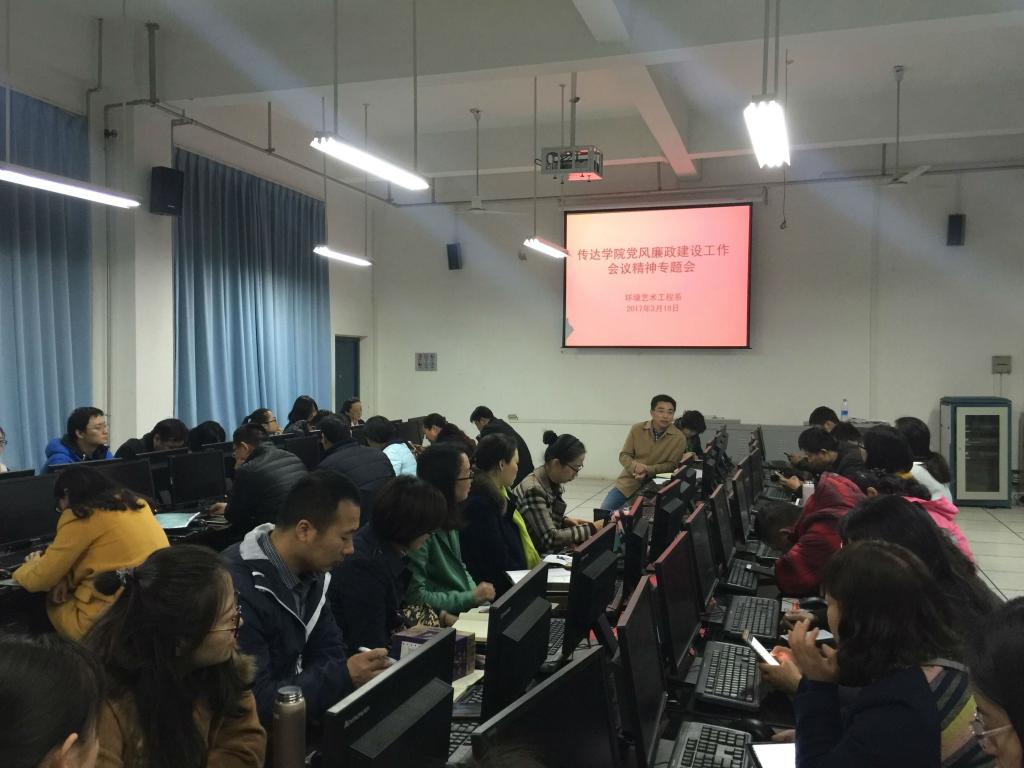 3月16日下午,环境艺术工程系在电教楼112召开全体教师会议,集中传达了学院党风廉政建设工作会议精神。