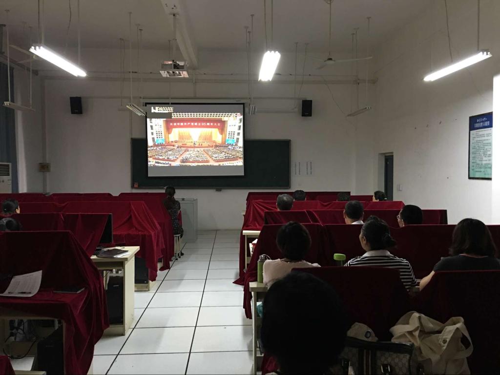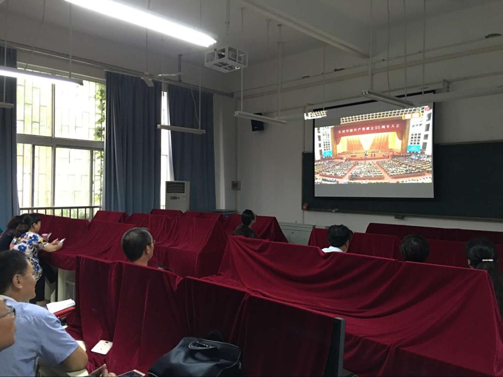 为庆祝党的95岁生日,7月1日上午,环境艺术工程系组织全体教师在电教楼109教室,集中观看中央电视台直播的“庆祝中国共产党成立95周年大会”视频。
