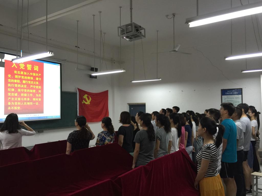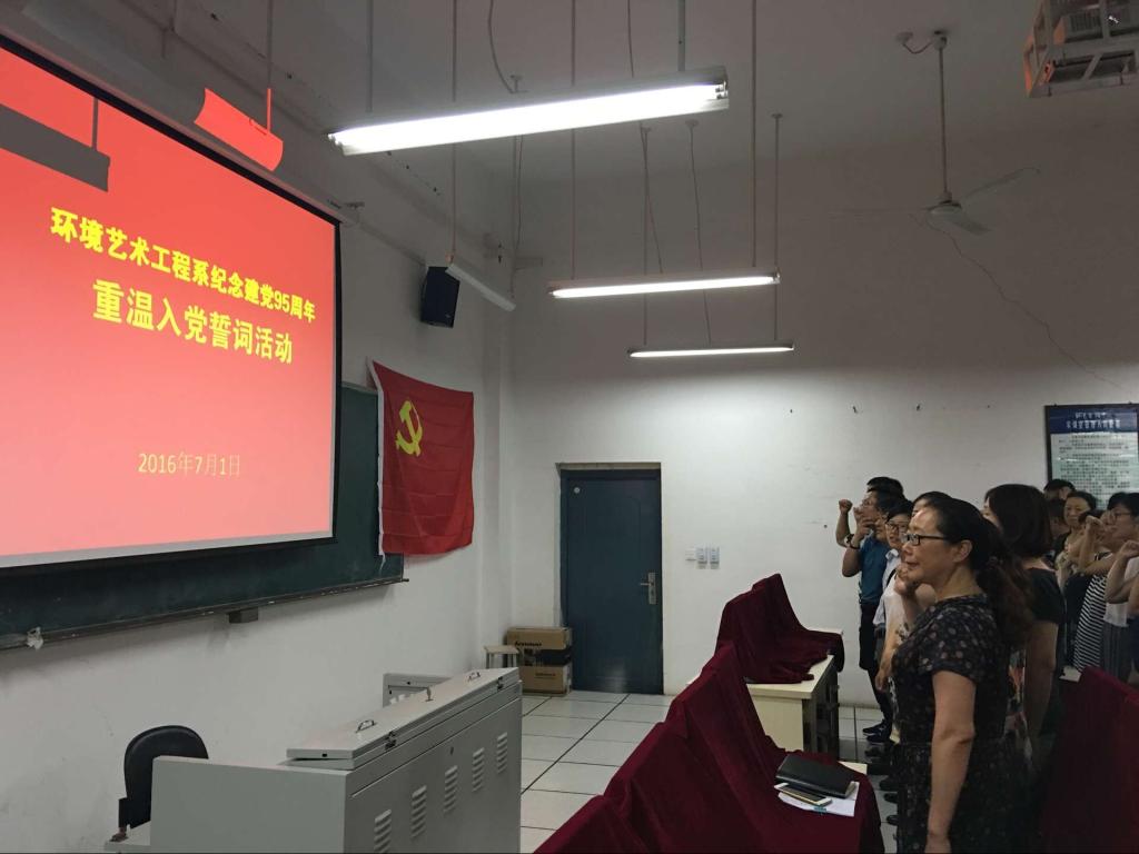 为庆祝中国共产党成立95周年,认真开展好以“学党章党规、学系列讲话,做合格党员”为主题的“两学一做”学习教育,进一步激励广大党员坚定爱党、信党、跟党走的理想信念,始终牢记职责使命,深入践行对党的庄严承诺。7月1日上午,环境艺术工程系党总支组织全体党员在电教楼109教室,开展“重温入党誓词,践行庄严承诺”主题党日活动。在活动中,全体党员们面对鲜艳党旗,庄严地举起右手宣誓,立下自己对党忠诚的誓言,表达了为党的事业奋斗终身的决心和愿望。
