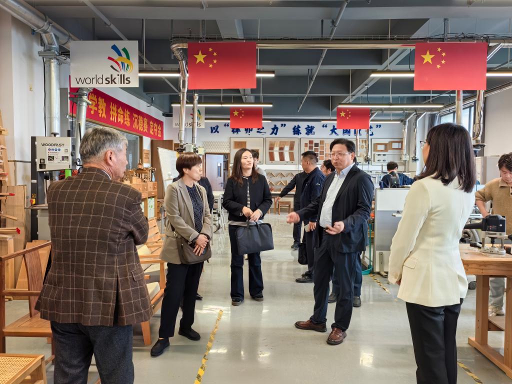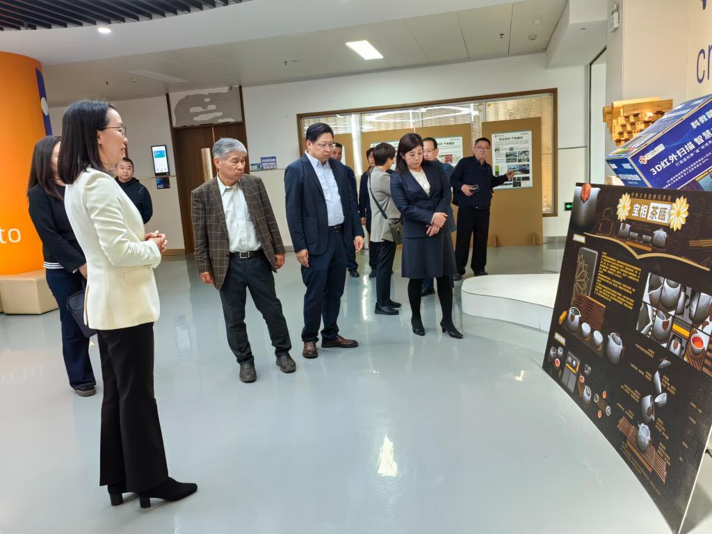 在考察过程中,代表团一行参观了实训室的设备与学生设计作品,并与现场师生进行了亲切互动。他们对产品艺术设计专业在人才培养、创意设计以及实践教学方面取得的成果给予了高度评价,尤其对学生作品所展现出的创新思维与实践能力表示赞赏。