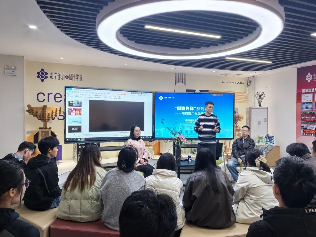 为深化产学研融合,拓宽学生行业视野,10月29日下午,数字创意与设计学院“创意先锋”系列沙龙在学院报告厅成功举行。本次活动特邀河南广播电视台都市生活事业部副总监田润、My Radio早高峰主持人孙振兴两位业界专家莅临现场,与同学们围绕“声浪与视界:融媒体时代的创意破局”这一主题,展开了一场深度、生动且充满启发的面对面交流。