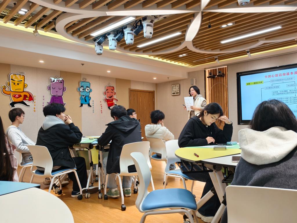 本次培训的核心内容是学习“大六人格”卡牌测试。作为一种生动有趣的心理探索工具,“大六人格”卡牌将复杂的人格特质直观呈现,能有效帮助同学们快速建立沟通桥梁,洞察内心世界。除了掌握测评工具,本次培训更注重实践应用。讲师重点教授了如何根据不同的性格特质,进行有效的心理调节和给予精准的帮助。心理委员们通过情景模拟和案例讨论,练习了倾听、共情、积极引导等关键技巧,学会了如何针对不同性格的同学,提供更具支持性和建设性的心理陪伴。参与培训的心理委员纷纷表示,此次培训内容务实管用、形式新颖鲜活,显著增强了开展班级心理健康工作的信心。