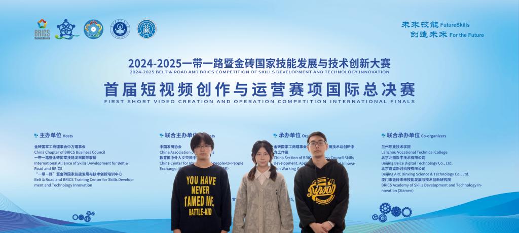 近日,一带一路暨金砖国家技能发展与技术创新大赛首届短视频创作与运营赛项总决赛在兰州职业技术学院举行。数字创意与设计学院学生崔天乐,苗清华,唐岩在全国95支队伍中脱颖而出,以优异的成绩,获得大赛高职组一等奖。