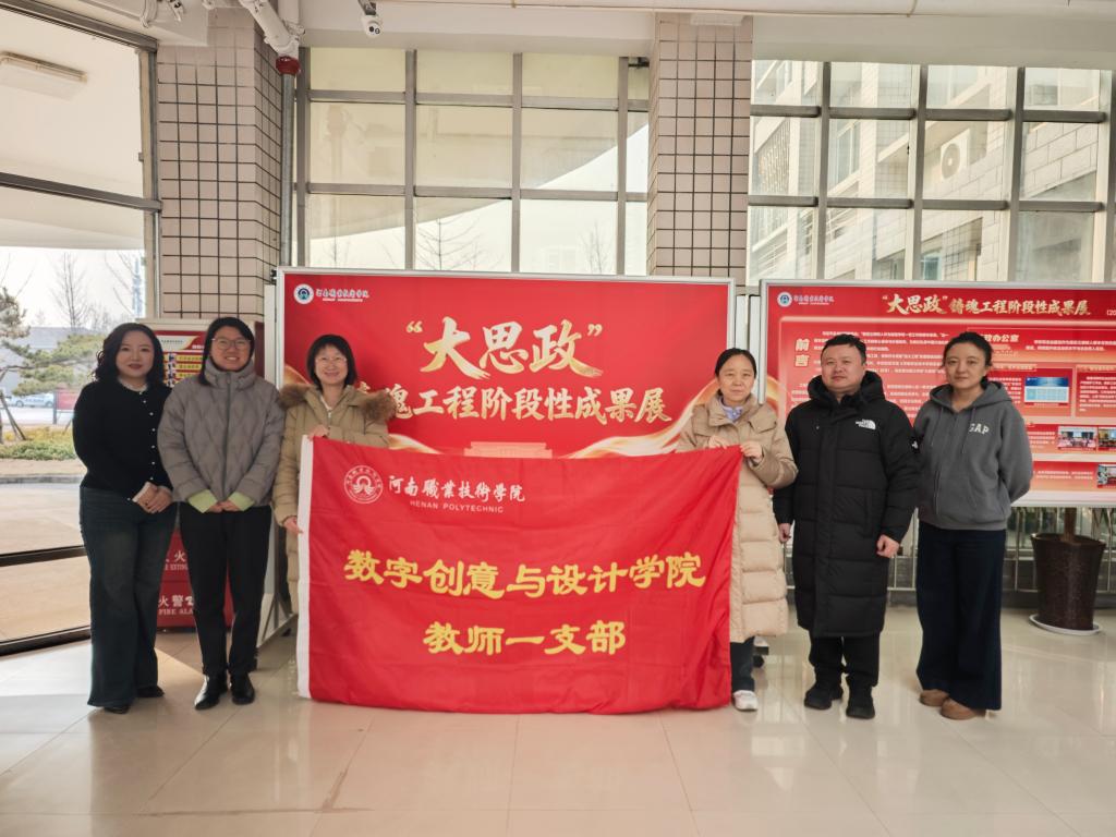 1月5日下午,数字创意与设计学院教师第一党支部组织党员教师代表,前往勤业楼一楼大厅开展主题党日活动,专题参观学习“大思政”铸魂工程阶段性成果展。