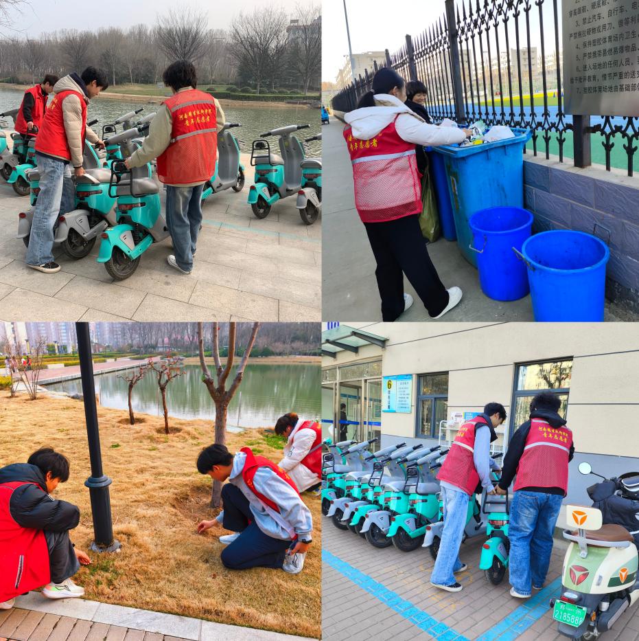 活动中,志愿者与青马班学员分工协作,对校园公共区域开展集中环境整治。大家重点规范共享单车停放、清理草坪杂物、清扫卫生死角、分类捡拾垃圾,耐心将零散车辆归位对齐,俯身清除路面与绿化带内的纸屑、塑料袋、烟头等废弃物,做到不留盲区、不漏一处。经过共同努力,校园道路干净整洁,绿化区域清爽有序,车辆停放规范整齐,整体环境面貌焕然一新。