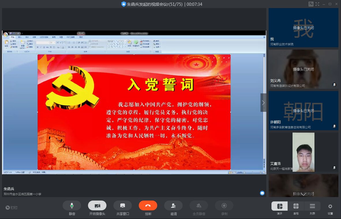 为庆祝中国共产党成立99周年,在“七一”来临之际,环艺学院学生党支部通过网络直播的方式举办了“迎七一、重温入党誓词”主题党日活动。学生支部书记朱函兵负责本次活动。