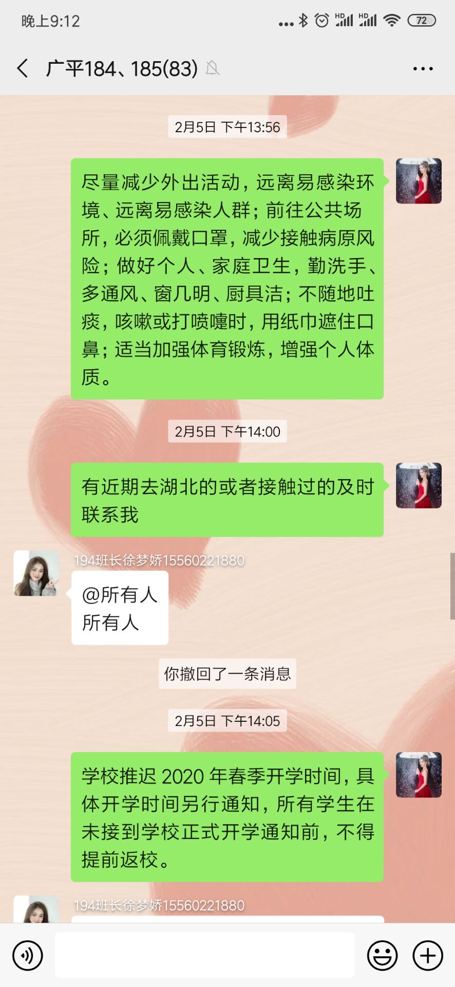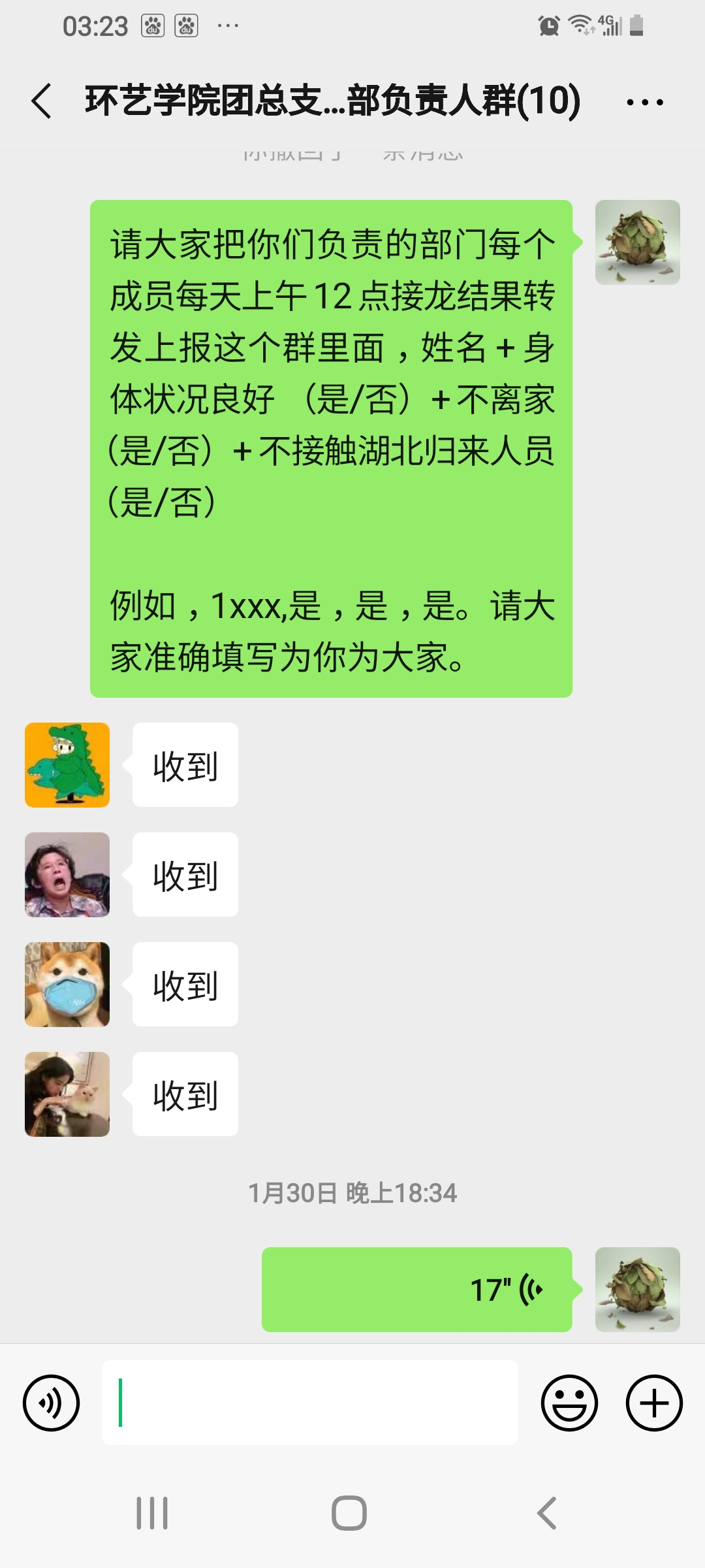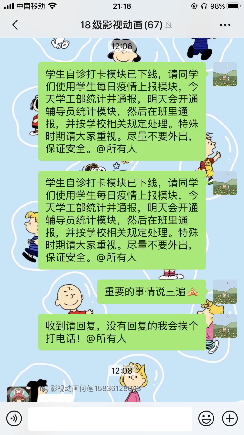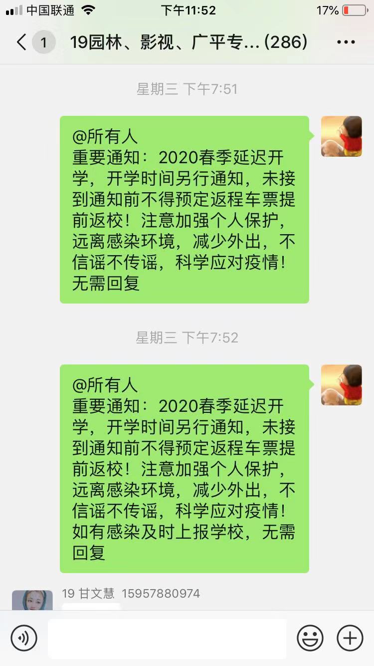 “疫情就是命令,责任重于泰山”!这是一场不能输的疫情防控“阻击战”,这是一场“不获全胜决不收兵”的硬仗!疫情发生后,根据学院疫情防控工作领导小组的安排部署,环艺学院学生管理团队克服各种困难,充分利用微信、QQ等新媒体渠道,预警摸排、严格要求、耐心提醒,确保把各类疫情防控信息及时传递给学生;“党有号召,团有行动”,在疫情防控中,学生管理团队充分发挥党、团组织和学生干部的青年生力军和先锋模范作用,建立逐层上报和督导机制,全面跟踪到每一位学生,精准掌握每一位学生的状态。