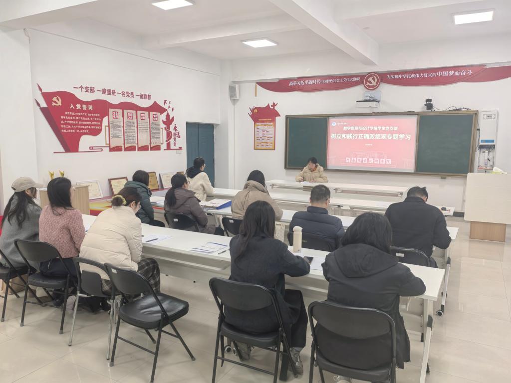 为深入学习贯彻习近平总书记关于树立和践行正确政绩观的重要论述,全面落实上级党组织及学校党委部署要求,根据学院党总支统一安排,3月11日,数字创意与设计学院学生党支部在敏行楼302室召开会议,部署党支部树立和践行正确政绩观学习教育工作。